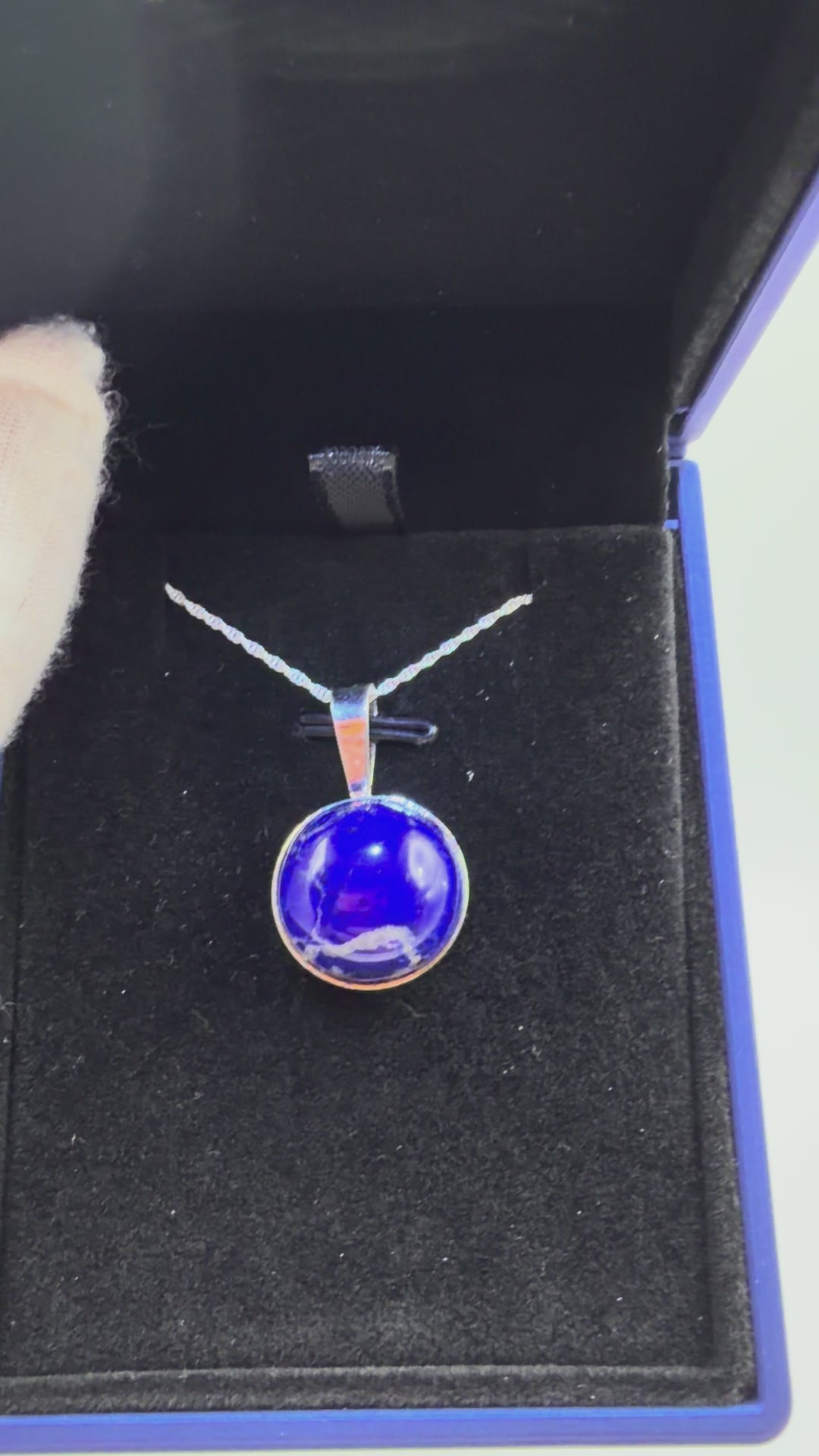 16mm Lapis Lazuli Pendant in Sterling Silver – Handcrafted in Maine (Chain Included)