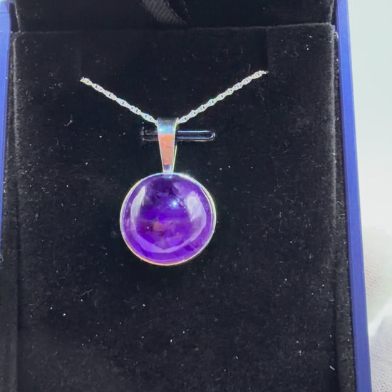 16mm Rwandan Amethyst Pendant in Sterling Silver – Handcrafted in Maine (with 18” Chain)