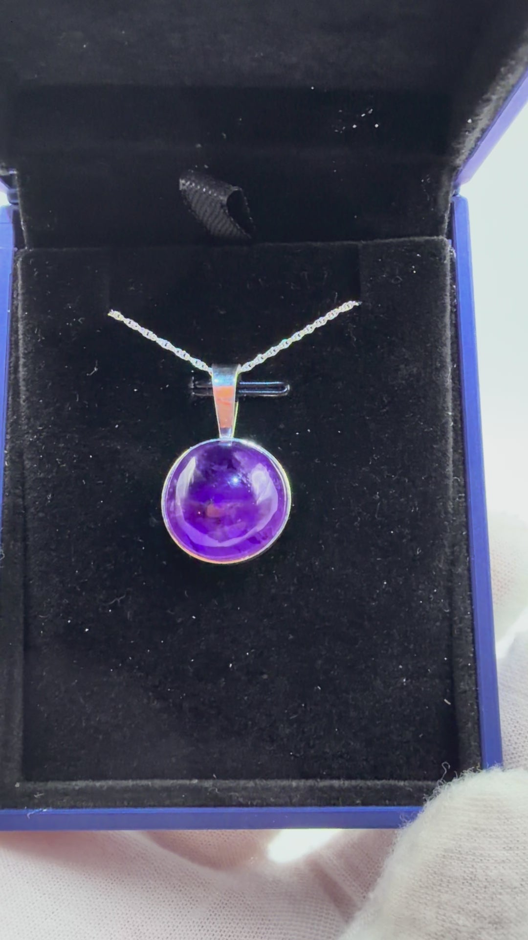 This 16mm Rwandan Amethyst pendant is handcrafted in Maine and comes with an 18” sterling silver 1mm rope chain included. The deep purple amethyst stone is natural and untreated, with good clarity and color for everyday wear. It’s one-of-a-kind and versatile — wear it solo or layer it.