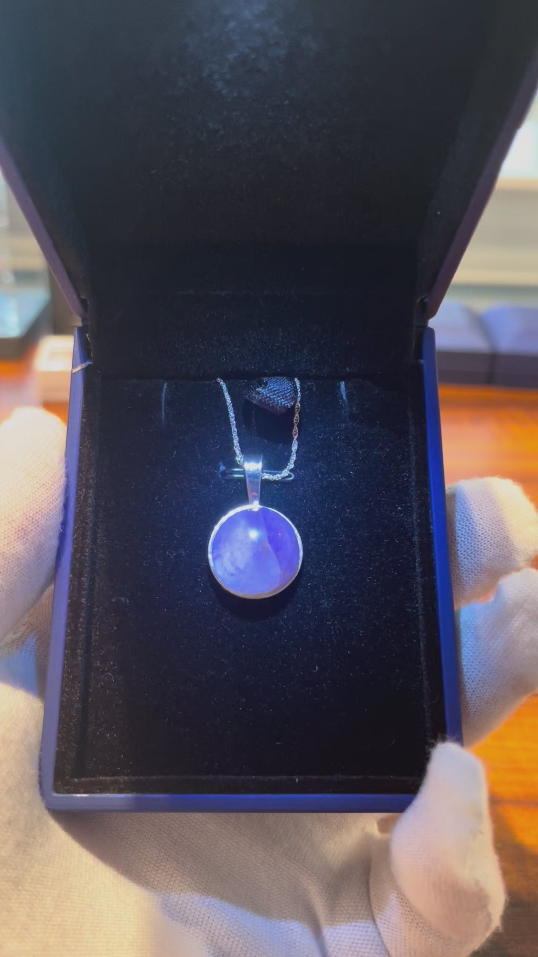 This stunning 17-carat Rwandan amethyst pendant features a captivating 16mm two-tone design set in sterling silver. Its rich purple hues combined with the elegant silver setting create a timeless piece that enhances any outfit. Perfect for adding a touch of sophistication and natural beauty, this pendant is a must-have for those who appreciate unique, high-quality gemstones. Elevate your jewelry collection with this exquisite amethyst pendant today.