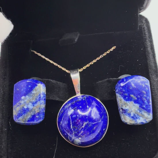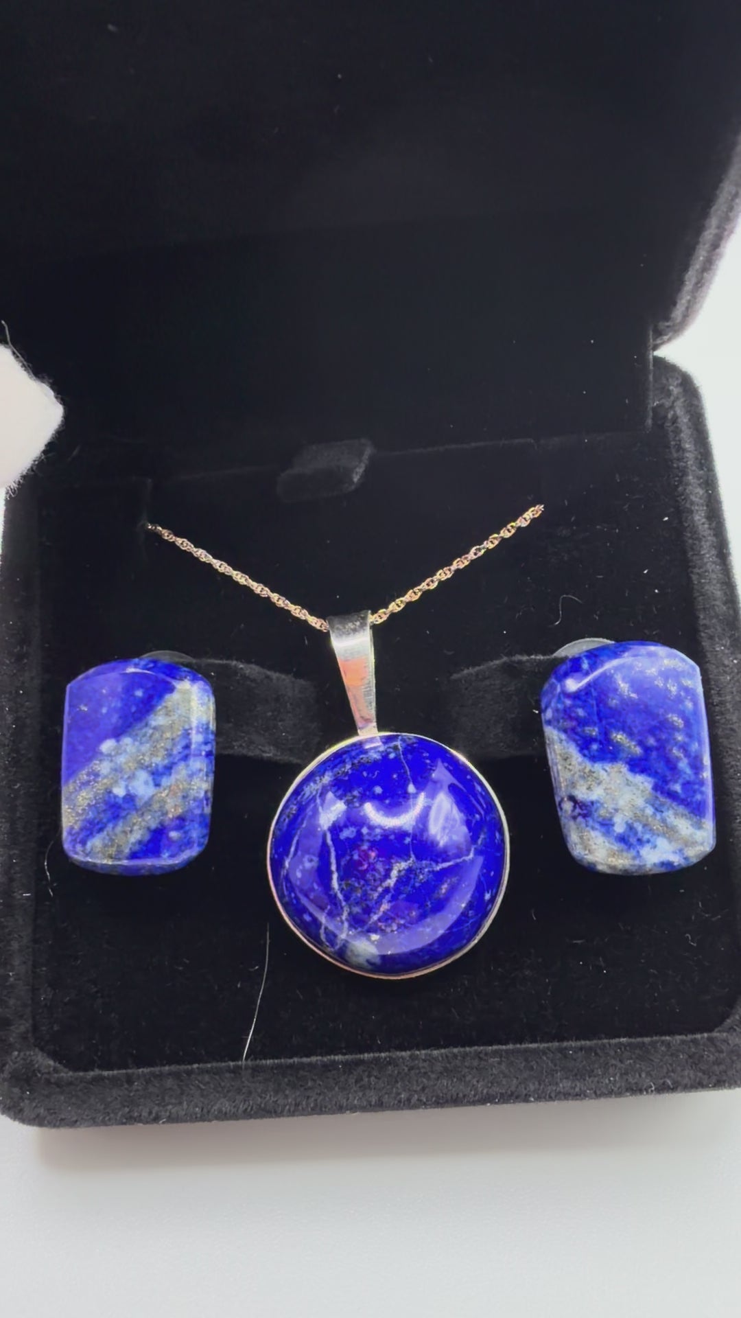 Lapis Lazuli Pendant & Earring Set – Handcrafted in Maine (with 18” Chain)