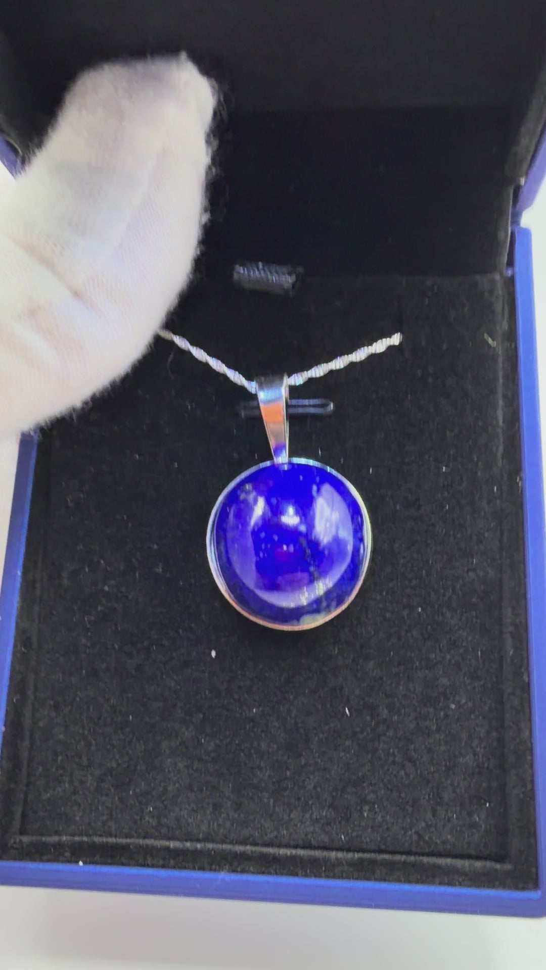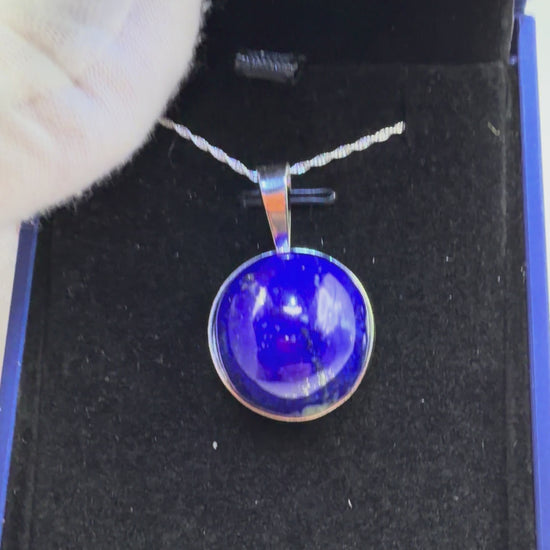 20mm Lapis Lazuli Pendant in Sterling Silver – Handcrafted in Maine (with 18” Chain)