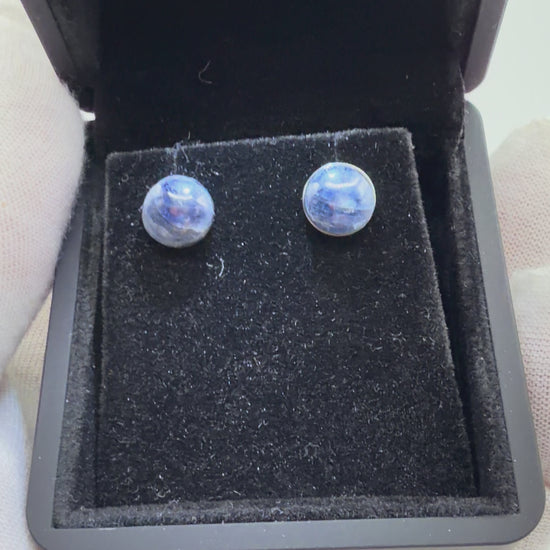 8mm Sapphire Titanium Stud Earrings – Handcrafted in Maine (One-of-a-Kind Pair)