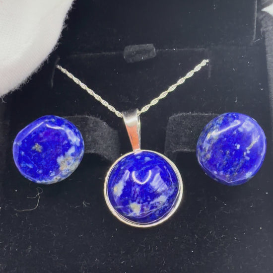 Lapis Lazuli Pendant & Earring Set – Handcrafted in Maine (with 18” Chain)