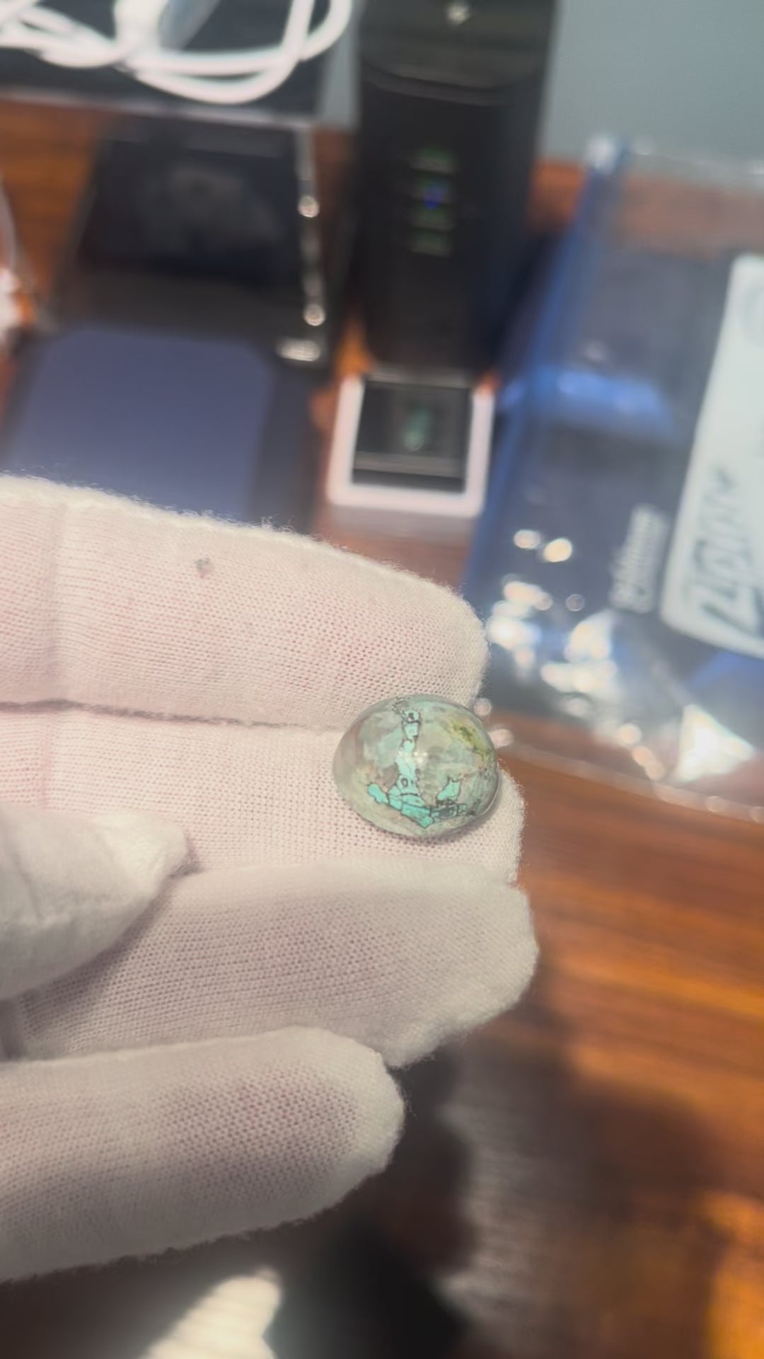 Natural art, 17ct Chrysocolla in quartz anchor
